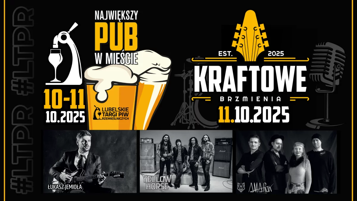 Sobota, 11 października – JEDEN BILET = DWA WYDARZENIA. Od godziny 14:00 korzystasz ze wszystkich atrakcji Targów Piw, a od 18:00 bawisz się na koncertach Kraftowych Brzmień – aż do północy! To wyjątkowy weekend, w którym Lublin żyje kraftem – setki piw rzemieślniczych, muzyka na żywo w klimacie rocka, retro i alternatywy, rozbudowana strefa planszówek i gier outdoorowych oraz najlepszy street food z całej Polski tworzą niepowtarzalny, piwny klimat Lubelskich Targów Piw Rzemieślniczych.