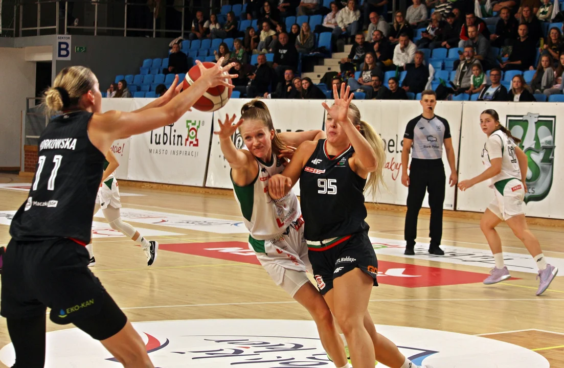 Po pierwszej kwarcie wydawało się, że gospodynie nie będą miały problemu ze spokojnym zwycięstwem. W ciągu początkowych 10 minut podopieczne trenera Krzysztofa Szewczyka zbudowały bowiem dziewięciopunktową przewagę, którą podwyższyły podczas następnej odsłony. Na przerwę biało-zielone zeszły z prowadzeniem 51:39.