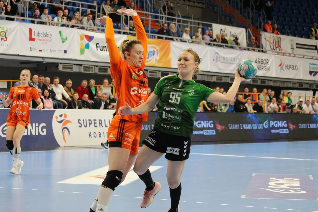 Gospodynie przystępowały do środowej konfrontacji z bagażem trzech kolejnych porażek w starciach z ekipą z Dolnego Śląska. W trakcie bieżącej kampanii lublinianki przegrywały bowiem z zespołem trenerki Bożeny Karkut 21:29 (w październiku), 24:38 (w lutym) oraz 23:31 na początku kwietnia. Także w czwartym starciu z Zagłębiem podopieczne Piotra Dropka zeszły z parkietu pokonane.
