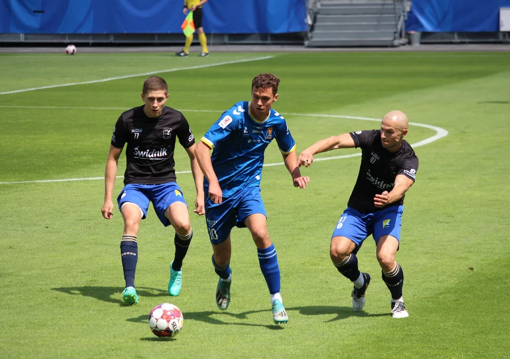 Po zmianie stron częściej przy piłce utrzymywali się świdniczanie, jednak nie potrafili przełożyć tego na bramki. Po końcowym gwizdku doszło natomiast do serii rzutów karnych, w których górą byli przyjezdni.