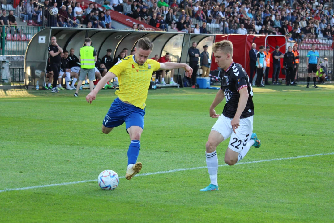 "Motorowcy" przystępowali do niedzielnego spotkania ze świadomością, że tylko trzy punkty na pewno zagwarantują im występy w barażach o wyższą klasę rozgrywkową. W przypadku każdego innego rezultatu lublinianie musieli liczyć na korzystne rozstrzygnięcia w równolegle rozgrywanych starciach. Do przerwy boiskowe wydarzenia układały się nieźle dla żółto-biało-niebieskich, którzy co prawda remisowali 0:0, ale w tym samym czasie Wisła Puławy przegrywała u siebie 0:1 z Lechem II Poznań.