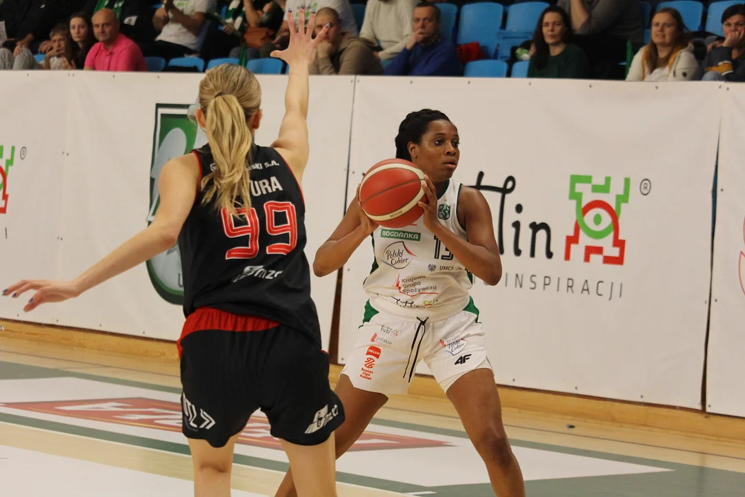 Od początku spotkania z Polonią lublinianki prezentowały się bardzo solidnie, grając agresywnie w obronie i z odpowiednią intensywnością oraz skutecznością w ofensywie. Już po pierwszej kwarcie miejscowe zasłużenie prowadziły różnicą ośmiu punktów, natomiast na dużą przerwę schodziły przy wyniku 45:29.