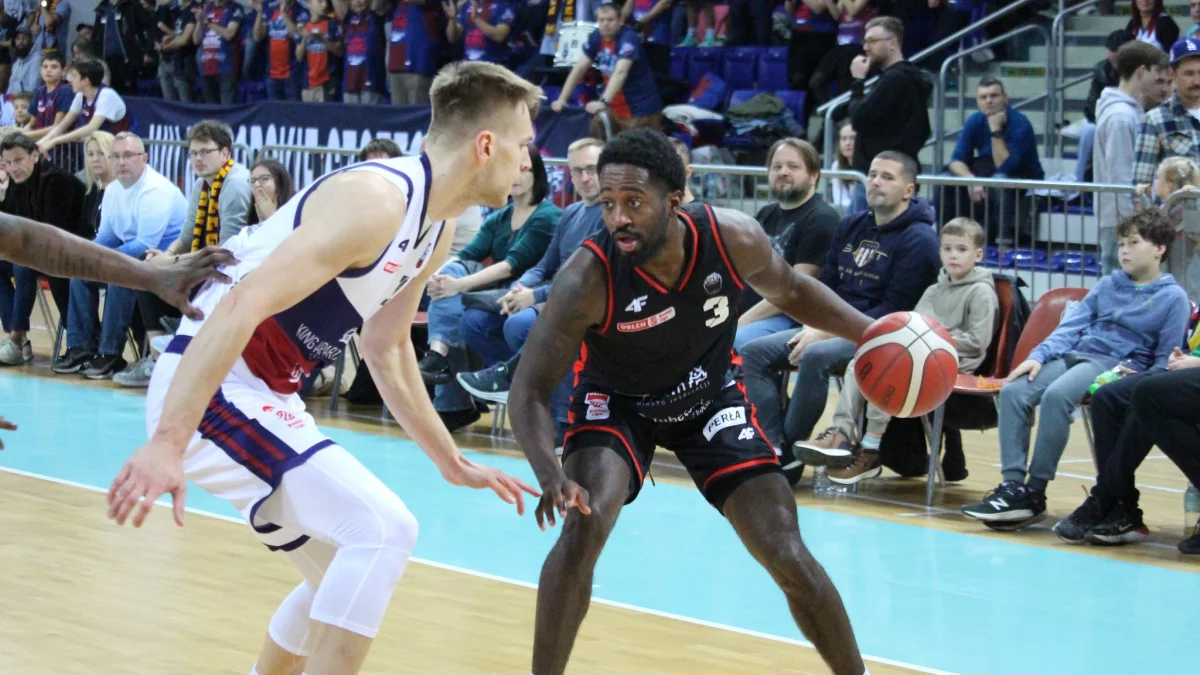 Niespodziewanie początek meczu należał do zespołu trenera Wojciecha Kamińskiego. Po serii niezłych akcji w defensywie i skutecznej grze w ataku Start wyszedł na prowadzenie 12:5. Czerwono-czarni długo nie oddawali rywalom pola, ale ci konsekwentnie zmniejszali straty, by finalnie wyjść na prowadzenie 27:24 na sam koniec pierwszej kwarty spotkania. Druga odsłona zaczęła się od kolejnych dobrych zagrań "Startowców", co pozwoliło im odzyskać drobną przewagę. Na parkiecie błyszczał wówczas Tyran de Lattibeaudiere, który po zaledwie 15 minutach gry miał na koncie 16 punktów i pięć zbiórek. Niestety dobra passa nie trwała długo, a reszta partnerów nie prezentowała podobnej formy, co Jamajczyk. To przełożyło się na kolejne odzyskanie prowadzenia przez Kinga, a już na cztery minuty przed końcem tablica wyników wskazywała 41:35 dla gospodarzy. Do końca kwarty gospodarze utrzymali sześciopunktowe prowadzenie i zeszli na przerwę przy stanie 48:42.