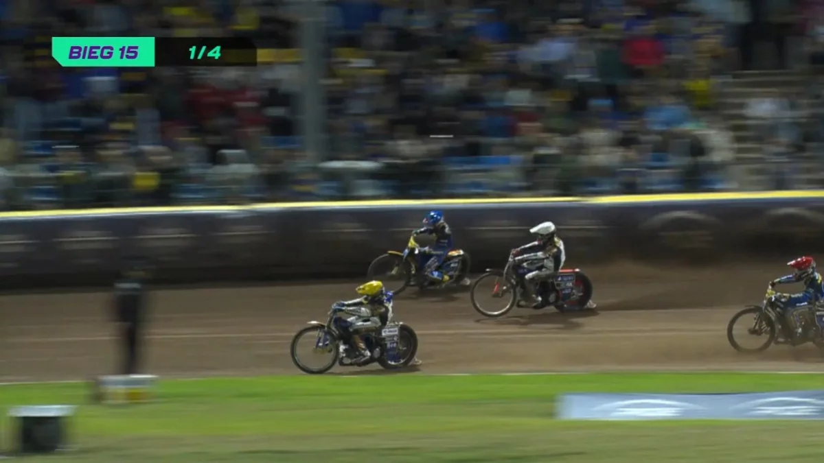 Na start końcówki spotkania wygrał Jensen, ale "dwójka" Holdera i punkt Lindgrena zapewniły Motorowi wygraną w całym meczu. Znakiem zapytania był jedynie rozmiar zwycięstwa. Jensen pojechał znowu i tym razem znów był najszybszy. Ograł nawet kapitalnego Zmarzlika, który z kolei wyprzedził Tarasienkę i zapewnił Motorowi zwycięstwo 47:43.
