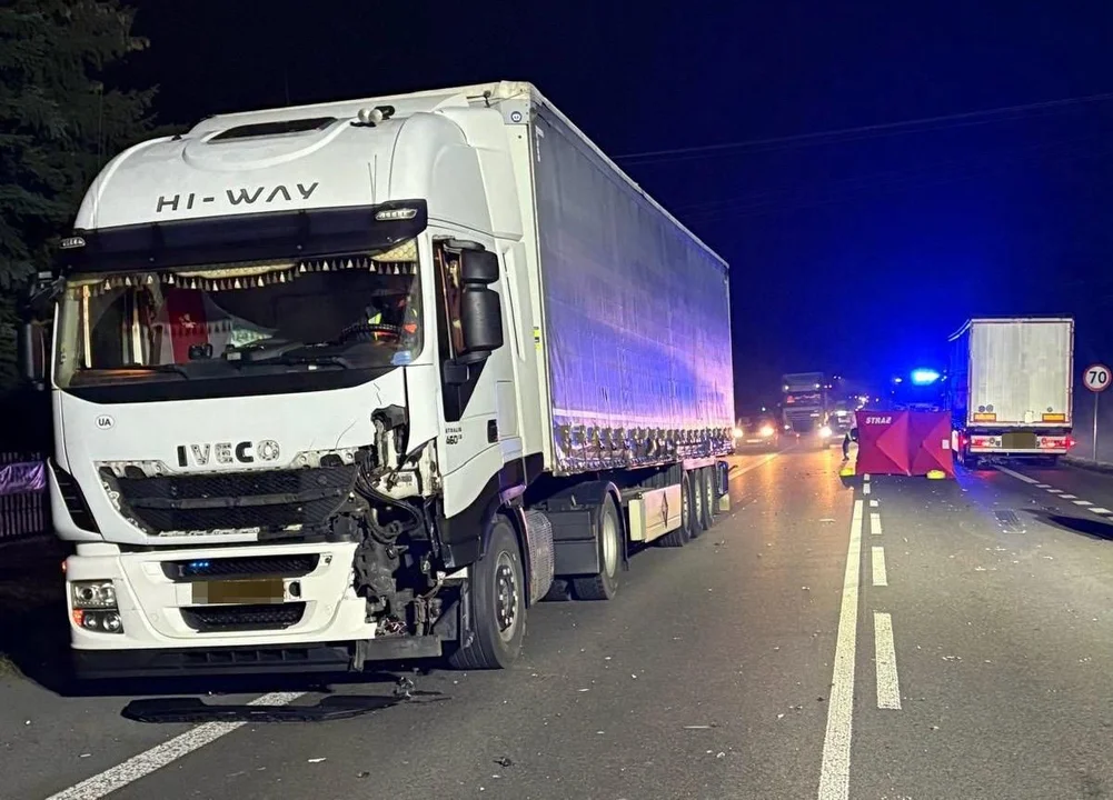 - Wstępne ustalenia policjantów wskazują na to, że pieszy poruszając się środkiem jezdni bez elementów odblaskowych na nieoświetlonym odcinku drogi, został potrącony przez dwa pojazdy ciężarowe. Niestety, w wyniku poniesionych obrażeń pieszy zmarł na miejscu zdarzenia. Ustalamy tożsamość pieszego. Kierowcy ciężarówek to 45-letni i 41-letni obywatele Ukrainy. Badanie alkomatem wykazało, że obydwaj byli trzeźwi. W wyniku wypadku droga krajowa przez kilka godzin była zablokowana - podaje sierżant Mateusz Ostrówka z KPP w Świdniku.