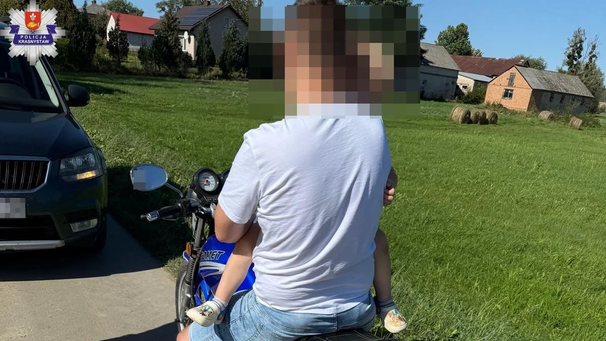 W niedzielę (21 września) policjanci, pełniąc służbę na terenie gminy Żółkiewka w pow. krasnostawskim zauważyli 33-letniego motorowerzystę, który przewoził 4-letnie dziecko.