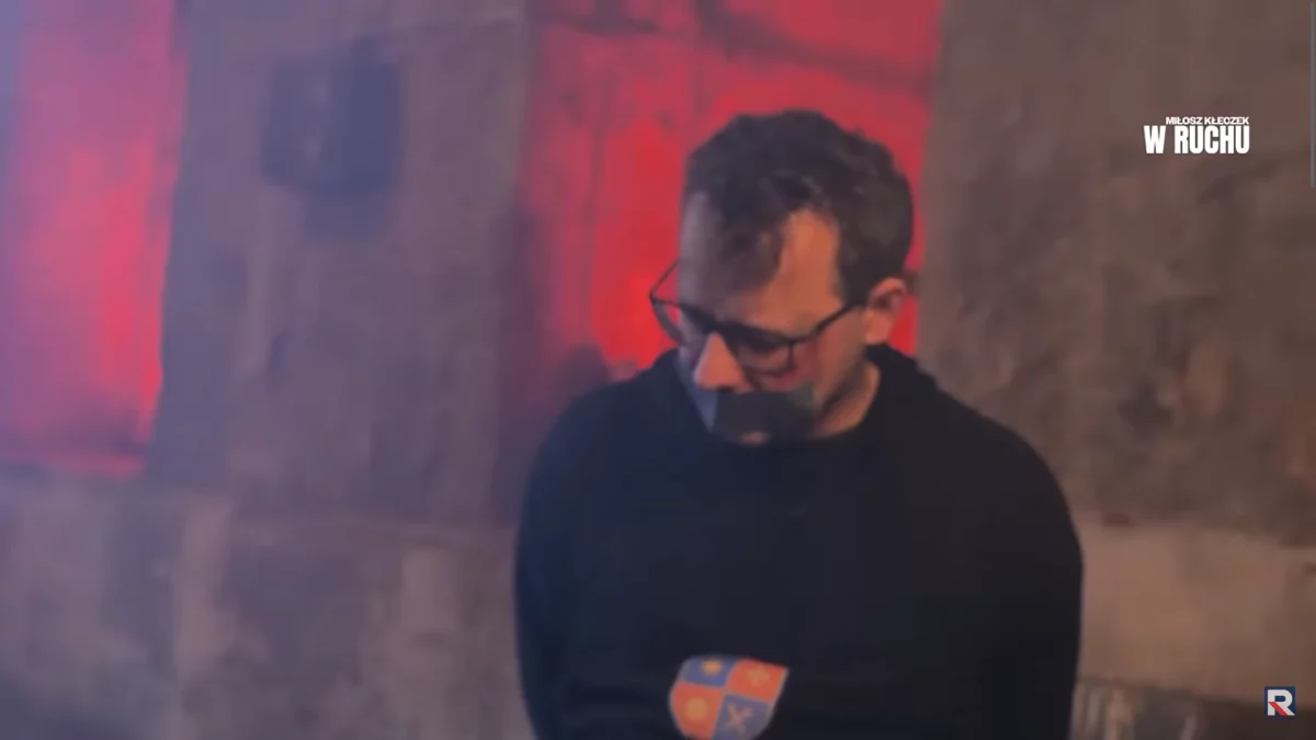 Na nagraniu widzimy spacerującego po Budapeszcie polityka. W pewnej chwili zatrzymuje się obok niego samochód. Wychodzi z niego zamaskowana postać z bronią, wkłada worek na głowę polityka i zabiera go do samochodu. Romanowski zostaje przewieziony na wywiad do Telewizji Republika.