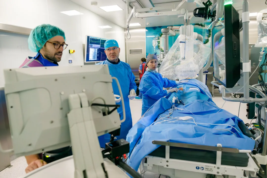- Na sali operacyjnej nie jesteśmy nagrywani my - lekarze, ale praca naszych rąk w polu zabiegowym. Rejestrowane są też wszystkie parametry zabiegu, w tym: zapis elektrogramów wewnątrzsercowych, obraz z ekranu RTG oceniający położenie cewników wewnątrz serca oraz parametry krioaplikacji usuwających z serca obszary odpowiedzialne za arytmię. Inaczej mówiąc jest rejestrowany cały przebieg zabiegu wraz z jego szczegółowymi technicznymi parametrami, które później będą analizowane pod kątem różnic w wykonywaniu tych zabiegów przez lekarzy z różnych wiodących ośrodków kardiologii zabiegowej - mówi dr hab. n. med. Andrzej Głowniak, prof. UM.