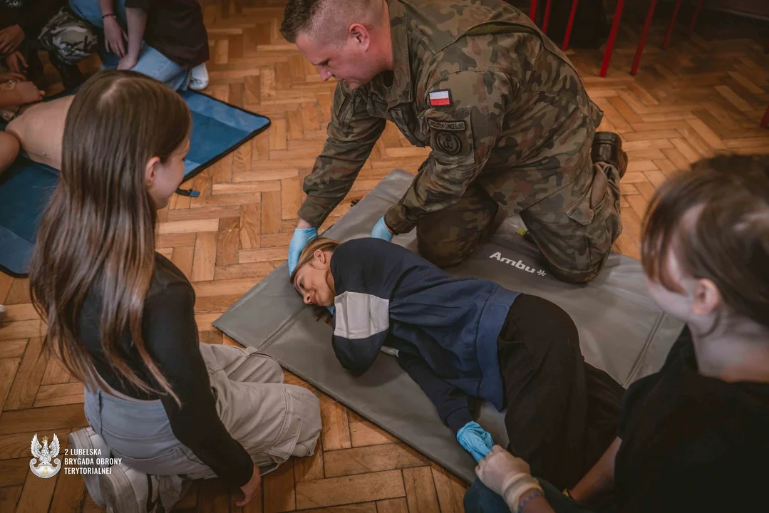- Program „Edukacja z wojskiem” to dobra okazja by w sposób przystępny w przyjaznej atmosferze dotrzeć do dzieci i młodzieży z bardzo ważnymi informacjami dotyczącymi obronności i bezpieczeństwa. Dla większości będzie to pierwszy w życiu kontakt z taką tematyką, dlatego to spore wyzwanie dla nas, aby wzbudzić ich zainteresowanie i skutecznie przekazać wiedzę - mówi st. szer. Łukasz, żołnierz - ratownik z 21 Lubelskiego Batalionu Lekkiej Piechoty 2 LBOT prowadzący zajęcia z pierwszej pomocy przedmedycznej w Szkole Podstawowej nr 15 im. Jana Pawła II w Lublinie.