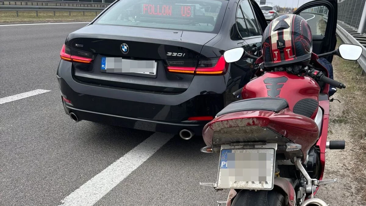 Motocyklista miał na liczniku 142 km/h, mimo że w tym miejscu obowiązywało ograniczenie prędkości do 100 km/h. W trakcie kontroli drogowej okazało się, że mężczyzna nie posiada uprawnień do kierowania pojazdami.
