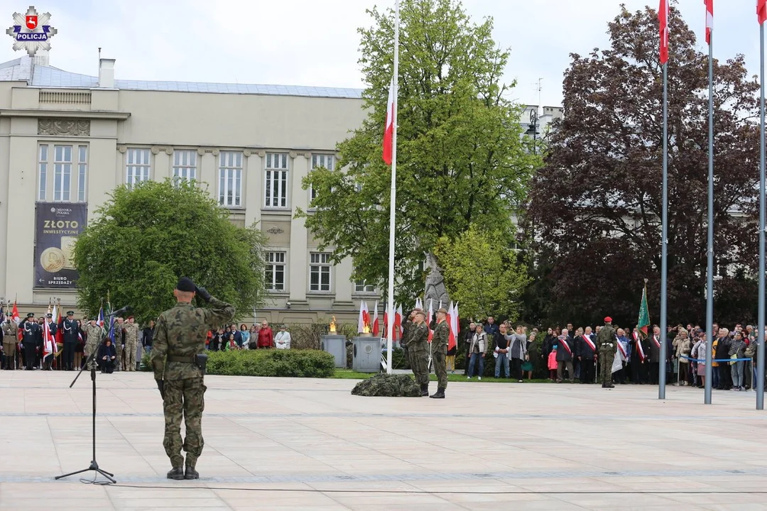 - Po wystąpieniu Wojewody Lubelskiego odczytano apel pamięci i oddano salwę honorową. Przedstawiciele władz administracji rządowej i samorządowej, parlamentarzyści, przedstawiciele służb mundurowych, organizacji kombatanckich i szkolnictwa złożyli wieńce i wiązanki kwiatów pod Pomnikiem Konstytucji 3 Maja. Lubelski Garnizon Policji reprezentował Komendant Wojewódzki Policji w Lublinie nadinspektor Artur Bielecki. W uroczystościach uczestniczył również Komendant Miejski Policji w Lublinie podinspektor Tomasz Gil - informuje kom. Anna Kamila z KWP w Lublinie. - Dzisiejsze uroczystości na Placu Litewskim uświetniła defilada pododdziałów, koncert pieśni patriotycznych oraz polskich tańców narodowych i regionalnych, wystawa sprzętu historycznego i współczesnego Wojska Polskiego i służb mundurowych. Swoje stoisko wystawiła również Komenda Wojewódzka Policji w Lublinie.