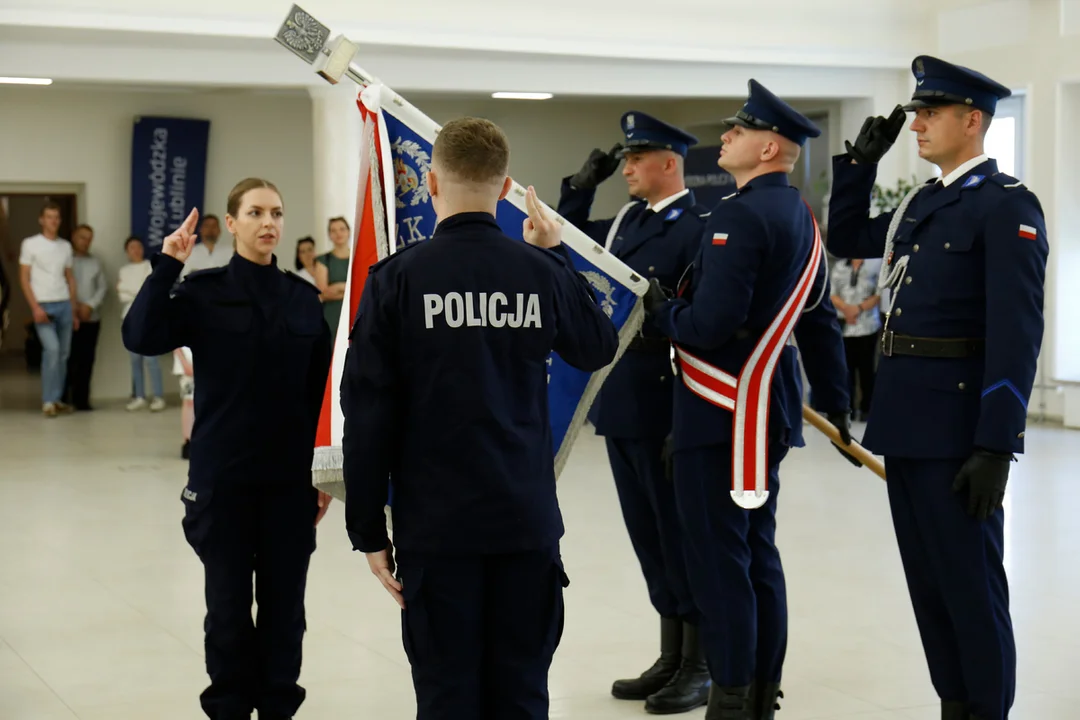 W poniedziałek (16 czerwca) w Sali Konferencyjnej Komendy Wojewódzkiej Policji w Lublinie odbyło się ślubowanie nowych funkcjonariuszy. 9 nowo przyjętych policjantów i policjantek wypowiedziało słowa roty ślubowania. Wśród nowych mundurowych jest 5 mężczyzn i 4 kobiety.