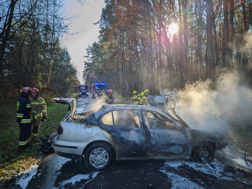W piątek (7 listopada) wybuchł pożar samochodu osobowego w wyniku uderzenia auta w przydrożne drzewo.