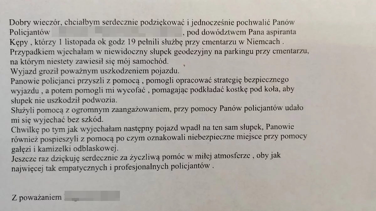 - Podjęte przez funkcjonariuszy działania zostały docenione przez kierującą, która potrzebowała pomocy. Kobieta zwraca uwagę na profesjonalizm oraz empatię policjantów. W wiadomości przesłanej do Komendy Miejskiej Policji w Lublinie dziękuje funkcjonariuszom za życzliwą pomoc i empatyczną postawę - informuje nadkom. Kamil Gołębiowski z KMP w Lublinie.
