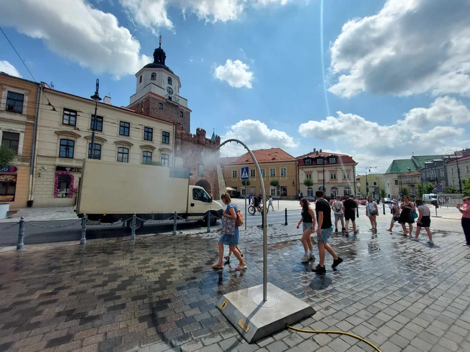 Z LublinaW Lublinie mieszkańcy chętnie spędzają czas na spacerach w centrum miasta. Gdy temperatury przekraczają już 30 stopni tych, którzy chcą ukryć się w cieniu lub ochłodzić pod wodną bramką nie brakuje.