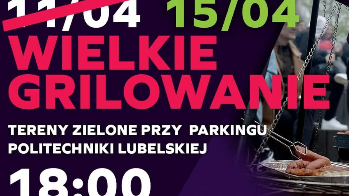 We wtorek (15 kwietnia) o godzinie 18:00 tereny zielone przy parkingu Politechniki Lubelskiej przekształcą się w centrum studenckiego życia towarzyskiego. Organizatorzy zapowiadają "Wielkie Grillowanie", które ma być nie tylko okazją do zaspokojenia studenckiego głodu, ale przede wszystkim miejscem spotkań i nawiązywania nowych znajomości.